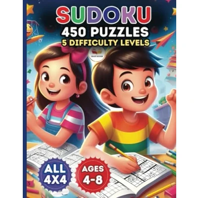 4X4 Sudoku For Kids Ages 4 8: Book With 450 Puzzles, 5 Difficulty Levels, Very Easy/Medium Easy/Easy/Medium/Hard Beginners