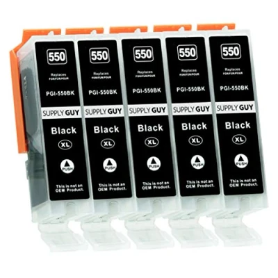 5 Ink Cartridges compatible with Canon PGI 550 PGBK Black Chip & Level Indicator for IP7250 IP8750 IX6850 MG5450 MG5550 MG5650 MG5655 MG6350 MG6450 MG6650 MG7150 MG7550 MX725 MX925