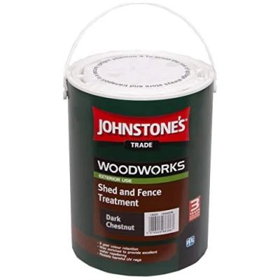 General description Johnstones Trade Woodworks Shed and Fence Paint is a water-based treatment specifically designed for rough sawn timber. This paint offers lasting color retention and weather protection, making it ideal for outdoor applications. Technical specifications Volume: 5 Litres Color: Dark Chestnut Coverage: 6-10 m²/litre Usage Formulated to be water repellent Resists fading over time Suitable for above ground rough sawn timber Application method: brush