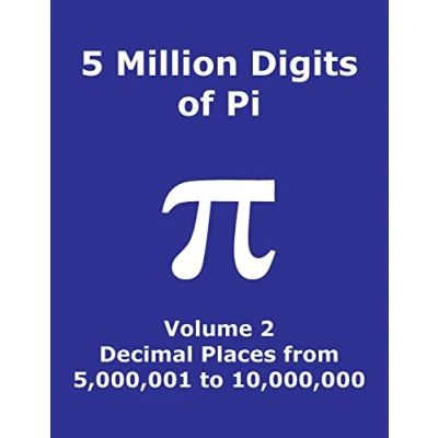 5 Million digits of Pi Volume 2 decimal Places from 5,000,001 to 10,000,000: 2nd 5000000 places; 8000 on page; Digit counter ... column index; Day (Pi Digits)