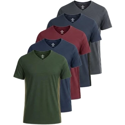 Make a Statement: Upgrade your activewear game with the unique V-neck design of these Men's shirts. Stand out and look stylish during any active exercise or casual day out. Comfort Meets Performance: These quick-dry athletic t-shirts provide ultimate comfort and top-notch performance whether you are working out or at the gym, ensuring you stay cool and comfortable all day long. Durable and Breathable: Constructed from premium materials, these tshirts are designed to last, with a lightweight and breathable fabric that wicks away sweat for all-day comfort. Perfect for sports, training, or any type of fitness. Pack of Five: With this pack of five tees, you have multiple options, making it easy to switch up your style and always have a fresh shirt on hand. Real Essentials' Commitment to Family: At Real Essentials, our goal is to provide families with accessible, high-quality clothing options. With this pack of shirts, you receive maximum value and long-lasting, premium activewear.