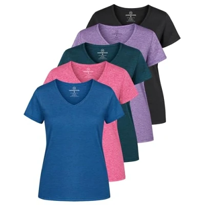 Performance Dry Fit Fabric: Stay cool and confident in these moisture-wicking workout tops for women, designed with breathable polyester-spandex that keeps sweat away during fitness, pilates, yoga, hiking, pickleball, tennis, zumba, or dance. Versatile Activewear Style: From athletic yoga outfits to gym-inspired sets, these short sleeve V neck tees double as casual athleisure shirts perfect for running, golf, football, or lounge wear—your all-day fitness clothing solution. Comfortable & Flattering Fit: Lightweight and flowy yet modest, these women’s tees move with you whether you prefer a loose top, cooling rash guard, or fitted activewear look. Perfect for exercise, sports, and stylish athleisure outfits. Everyday Function & Protection: These active t-shirts are ideal for summer sports, hot pink statement looks, or sun protection tops with SPF qualities, offering breathable comfort that transitions seamlessly from gym to errands. 5-Pack Value for Every Activity: Stock up on inspired workout tops—this multi-pack of women’s dry fit shirts ensures you always have the right outfit for workouts, athleisure, or everyday exercise clothing.