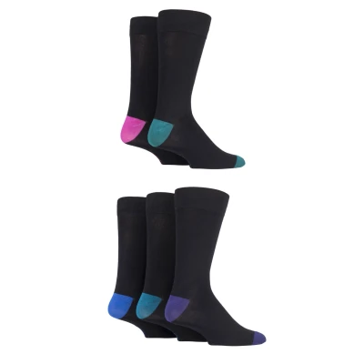 5 Pair Jewel/Black Contrast Heel and Toe Bamboo Socks Men's 7 11 Mens SOCKSHOP