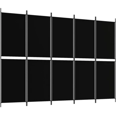 5 Panel Room Divider Black 250x180 cm Fabric vidaXL