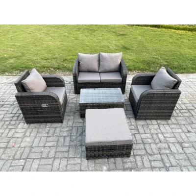 5 pc Outdoor pe Rattan Garden Furniture Set Wicker Love Sofa Coffee Table 2 Armchair Big Footstool Dark Grey Mixed Fimous