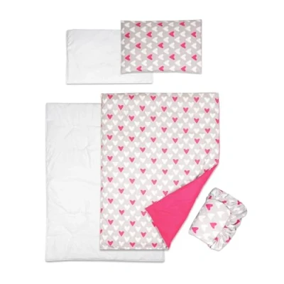 5 Piece Bedding Set Duvet Pillow with Covers & Cotton Sheet for 120x60 cm Baby Cot Bed (Pink Hearts)
