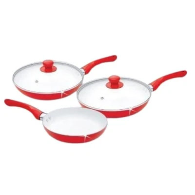 5 Piece Ceramic Non Stick Frying Pan with Glass Lid 20 cm 24 cm 28 cm frying pan Red Red