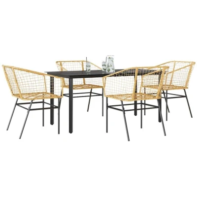 5 Piece Garden Dining Set Brown Poly Rattan Glass Vidaxl