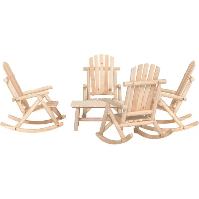 VidaXLEnjoy a cosy leisure time with your family in your outdoor space on this wooden garden lounge set! Solid spruce wood: Made of solid spruce wood, the lounge set is durable and stable.Rocking design: Relax by sitting comfortably on the garden rocking chairs while enjoying a calming, gentle rocking motion.Comfortable seat experience: With curved form-fitting seats, armrests, and Adirondack-style backrests, the lounge chairs allow you to sit back comfortably after a long day.Sturdy tabletop: The sturdy tabletop of the coffee table is ideal for placing dishes, drinks and snacks. Good to know:To make sure your outdoor furniture stays beautiful, we recommend protecting it with a waterproof cover.It is recommended to treat the wood with an outdoor paint, in order to extend the lifetime of the product.