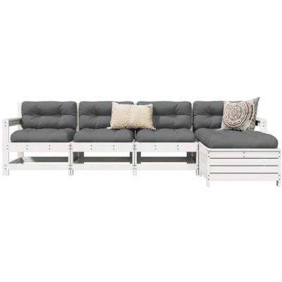5 Piece Garden Sofa Set White Solid Wood Pine Vidaxl
