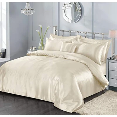 5 Piece Satin Sheets Super Soft Shiny Bedding Sets, 1 x Duvet Cover, Fitted Bed Sheet, 4 Pillow Cases, Cushion Full Complete Set (Cream, Single)