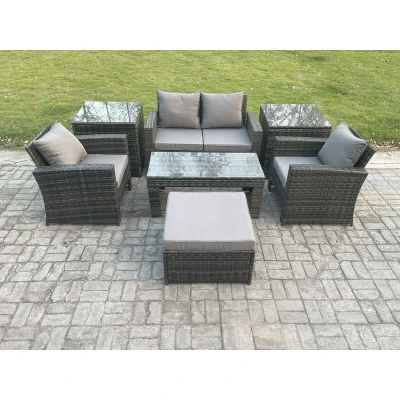 5 Seater Outdoor Rattan Garden Furniture Set Patio Lounge Sofa with Coffee Table 2 Side Tables Big Footstool Dark Grey Mixed Fimous