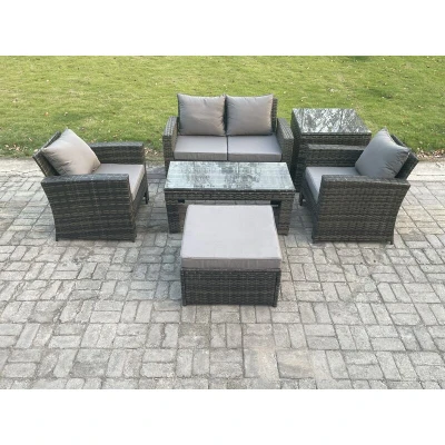 5 Seater Outdoor Rattan Garden Furniture Set Patio Lounge Sofa with Coffee Table Big Footstool Side Dark Grey Mixed Fimous