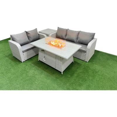 5 Seater pe Rattan Wicker Garden Furniture Patio Conservatory Sofa Set with Firepit Dining Table 3 Love Side Fimous