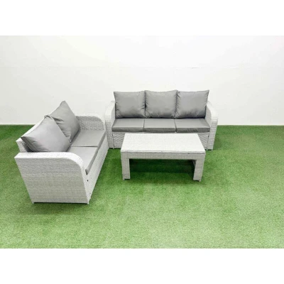 5 Seater pe Rattan Wicker Garden Furniture Patio Conservatory Sofa Set with Oblong Coffee Table 3 Love Fimous