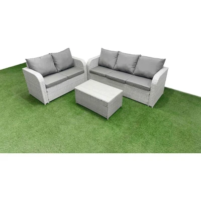 5 Seater pe Rattan Wicker Garden Furniture Patio Conservatory Sofa Set with Rectangular Coffee Table 3 Love Fimous