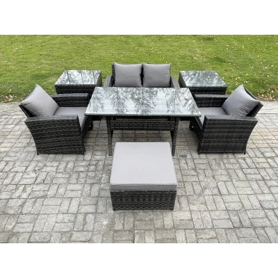 5 Seater pe Wicker Outdoor Garden Furniture Set Patio Rattan Rectangular Dining Table Lounge Sofa with 2 Side Tables Big Footstool Fimous