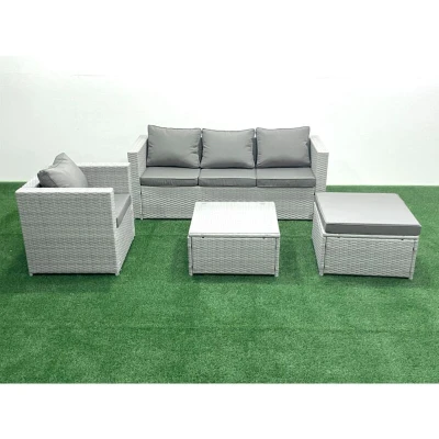 5 Seater Rattan Garden Furniture Set with 3 Sofa Chair Square Coffee Table Big Footstool Light Grey Mixed Fimous