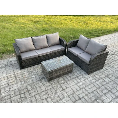 5 Seater Rattan Wicker Garden Furniture Patio Conservatory Sofa Set with Rectangular Coffee Table 3 Love Fimous