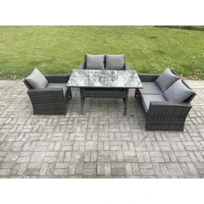 5 Seater Wicker Rattan Garden Dining Set Outdoor Furniture Sofa with Table Double Seat Dark Grey Mixed Fimous