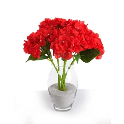 5 Single 35cm Hydrangea Flower Stems Red