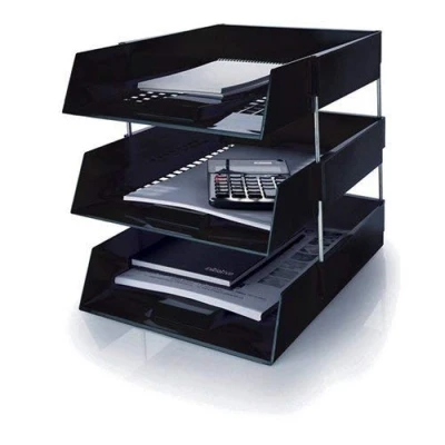 5 Star Black A4 Plastic Letter File Trays, Including Risers. (3 Trays/2 Riser Sets)