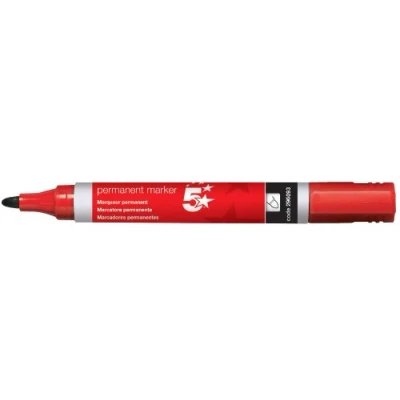 5 Star Office Permanent Marker Xylene/Toluene free Smearproof Bullet Tip 2mm Line Red [Pack 12]