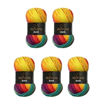 5 x 100 g Wollbiene Batik, 500 Wool with Colour Gradient, Multicoloured, Knitting Wool, Crochet (5910 Rainbow)