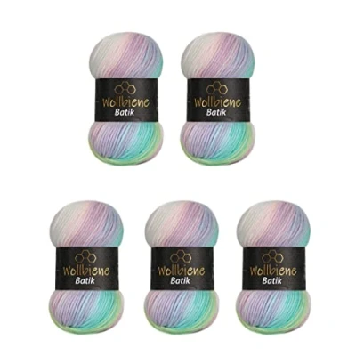 5 x 100 g Wool Bee Batik 500 with Colour Gradient Multicoloured Knitting Crochet (2010 Green Pink White Pastel)