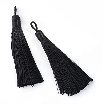 5 x Black Silky Soft 8cm 9cm Tassels with Hanging Loops for Bookmarks Jewellery Keychains Pendant Decoration Crafts