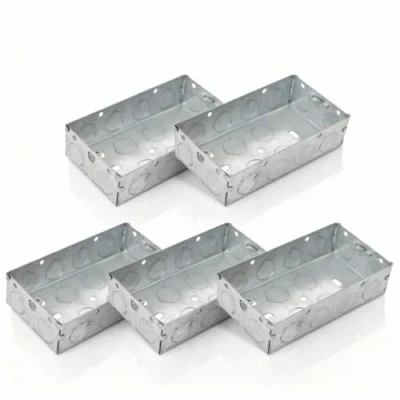 5 x Double Metal Back Box 35mm Flush Wall Pattress / 2 Gang Electrical Sockets
