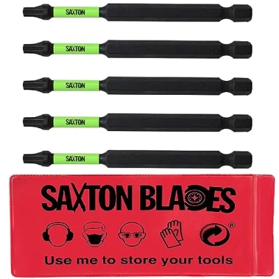 [INCLUDED COMPONENTS] 5x Saxton - 89mm magnetic impact driver bits Torx TX20 - supplied in a reusable storage pouch [ULTIMATE DURABILITY] Made of high quality S2 alloy impact resistant steel. Hardness 62HRC which can be used on high strength working situations [FINE TOOTH DESIGN] Anti-slip fine tooth design makes sure that each edge can be accurately locked into the screws [SPECIAL FEATURES] Special coating to protect the surface, rust-proof, extra strong magnetism, more powerful than normal cheap screwdriver bits [STANDARD FITTING] 1/4 hex shank, perfect fit for impact drivers, most hand screwdrivers, electric screwdrivers, electric drills. Fits Bosch Dewalt Makita Milwaukee etc. Professional quality - suitable for tradesmen and DIYers, Manufacturer: Saxton Trading Ltd