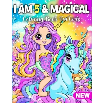 5 Year Old Girls Gifts _ I Am & Magical: Age Five Birthday Coloring Book for Kids: Cute Unicorns, Mermaids, Princesses, and Creative Fun 5th Presents