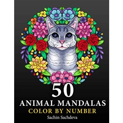 50 Animal Mandalas: Color by Number Coloring book for Adults features Floral Mandalas, Geometric Patterns, Swirls, Wreath, Wild Creatures Stress ... (Mandalas Adults)