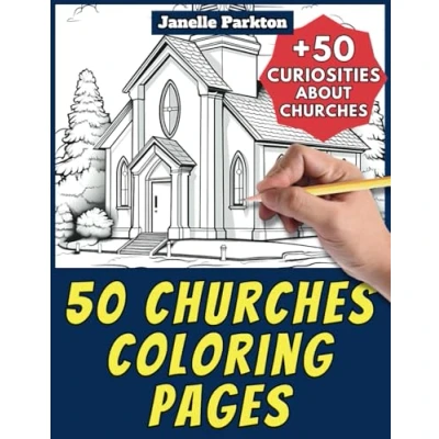 50 Churches Coloring Pages Book for Kids and Adults: +50 Amazing Facts about Churches. Children Grown Ups. Color Learn with Janelle Architecture Vol. 62