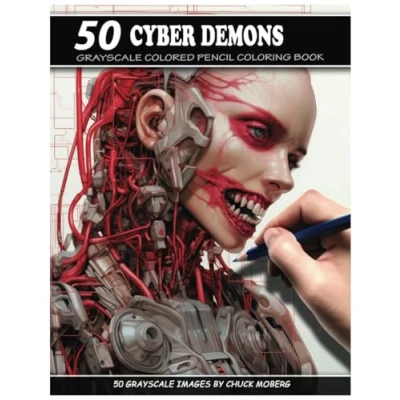 50 Cyber Demons: Grayscale Colored Pencil Coloring Book (Chuck Moberg's Horror Series)