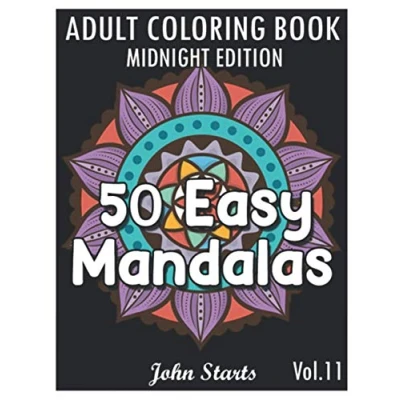 50 Easy Mandalas Midnight Edition: An Adult Coloring Book with Fun, Simple, and Relaxing Pages (Volume 11)