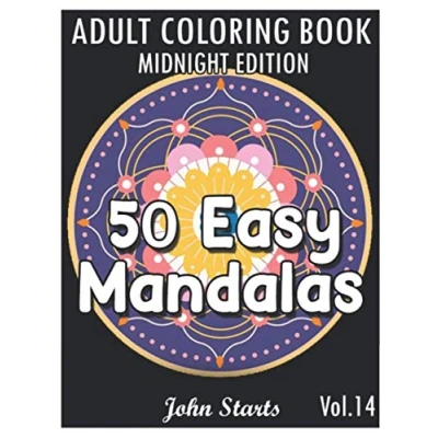 50 Easy Mandalas Midnight Edition: An Adult Coloring Book with Fun, Simple, and Relaxing Pages (Volume 14)