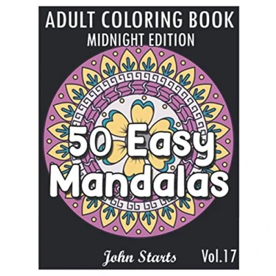 50 Easy Mandalas Midnight Edition: An Adult Coloring Book with Fun, Simple, and Relaxing Pages (Volume 17)