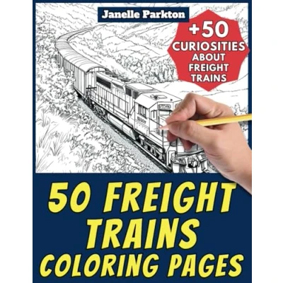 50 Freight Trains Coloring Pages Book for Kids and Adults: +50 Amazing Facts about Trains. Children Grown Ups. Color Learn with Janelle Vehicles Vol. 71