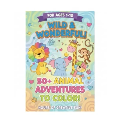 50+ Fun Animals Coloring Book for Kids Ages 1 10: Cute and Easy Animal Designs Learning, Relaxation & Creativity