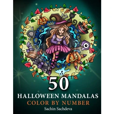 50 Halloween Mandalas: Color by Number Coloring book for Adults features spooky mandalas of pumpkins, ghosts, sugar skulls, witches, haunted house and ... (Mandalas Adults)