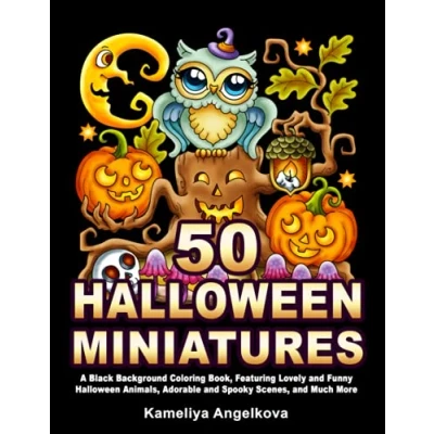 50 Halloween MINIATURES: A Black Background Coloring Book, Featuring Lovely and Funny Animals, Adorable Spooky Scenes, Much More