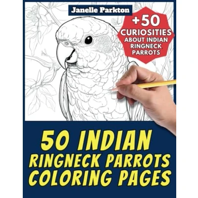 50 Indian Ringneck Parrots Coloring Pages Book for Kids and Adults: +50 Incredible Facts. Children Grown Ups. Color Learn with Janelle Animals Vol. 289