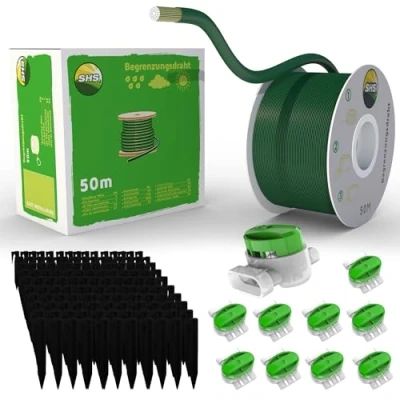 50 m Boundary Cable + 150 Ground Spikes 10 Connectors for Robotic Lawnmowers, Accessory Set, Wire Search Cables, Compatible with Gardena/Bosch/Husqvarna/Worx/Honda/Robomow