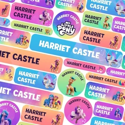 50 Name Labels for Kids No Iron Tags Clothes Stickers Water Bottles, School Uniform, School, Nursery, Care Homes, Washable and Dishwasher Safe Children (My Little Pony)