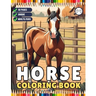 50 Pages Horse Coloring Book Gift for Adults Kids Men Women Boys Girls Teens Cute Animal Activity Sheets Farmers Students ... Easy and Bold Wild