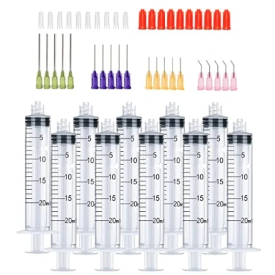 【Package Included】-50 Pcs/set, contain 10pcs 20ml luer lock syringes, 5pcs 1.5in 14g blunt needles, 5pcs 1in 21g blunt needles, 5pcs 0.5in 23g blunt needles, 5pcs 0.5in 20g bend needles, 10pcs orange syringe caps and 10pcs transparent needle caps. 【Luer Lock Connection】- The luer lock is a connector can prevent the needle falls off from the syringes. 【Widely Use】- Great for wood adhesive, glue injector, essential oil dispenser, grain alcohol, science lab measuring, hobby crafts, paint, precision applications of CA glues, ink refill, perfume measure and injection, lubricants, sealants etc. 【Great Components】-Contain different sizes of blunt needle, with luer lock syringe caps, exclusive outfit needle ends which protect you not to be hurt, and also more convenient to store liquid in the syringes for future using. 【Warm Note】- For industrial use, not for medical!