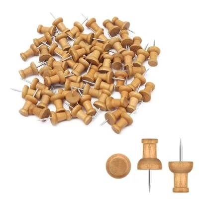 50 Pcs of Wood Push Pins, Cork Notice Board Thumb Tacks Wooden Map Pins for Board, Bulletin, Perfect School Office Use