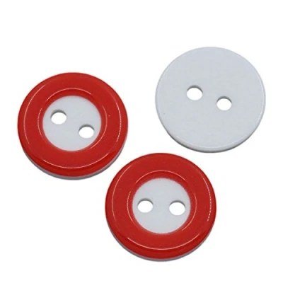50 Red and White Round 13mm Resin Buttons with 2 Sewing Holes. Ideal for Clothes, Arts Crafts